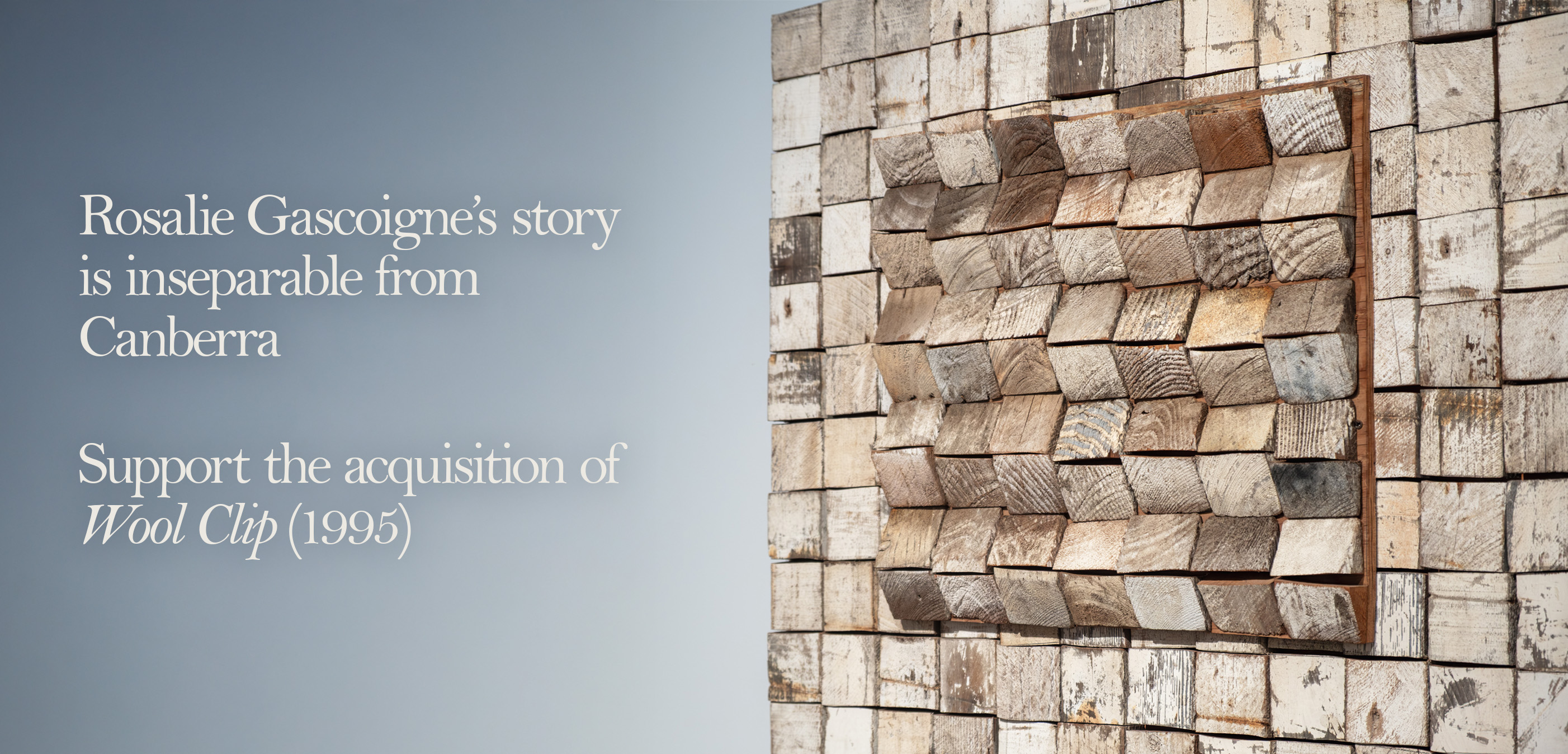 Please, if you are able, consider making a donation to support the acquisition of Wool Clip (1995). Your gift helps us to hold and care for this vital piece of Canberra’s creative legacy for future generations.